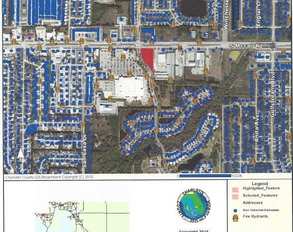 Restaurant, Fast food, Divisible parcel, (directly across Oriole Blvd. from Wal-Mart Supercenter. Has direct access from McCall Rd (SR 776) and from Wal-Mart via a landscaped boulevard. In addition, all entitlements in place to build out 18,900 square feet of mixed commercial or office with the corner pad serving as the anchor. We can send you a preliminary site plan laid out for bank location with two drive thrus. All civil engineering completed and SWFWMD permit in hand. Seller flexible: will sell pad only, entire 1.83 acre site or build to suit and lease back. Traffic count: 30, 500 – both directions per day. Property is high and dry Property located at signalized corner of busy State Road 776 (McCall Road) and Oriole Blvd. in Englewood, Florida. Property has two access points from either McCall Road or Oriole.